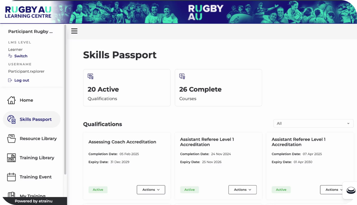 As one of the first adopters of etrainu’s Qualifications, Rugby Australia gained the ability to support long-term, structured learning for their community.