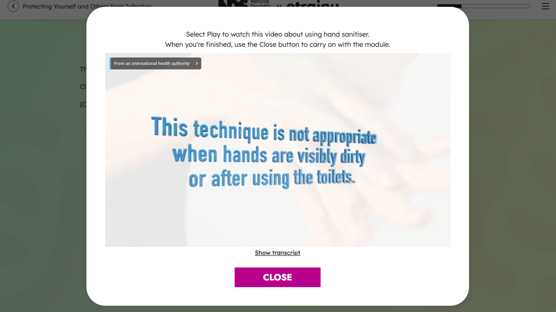 Infection Prevention and Control explores how infections spread and what can be done to minimise the risk. Through this training, learners will gain the key skills to identify infection hazards and follow recommended processes to prevent infections from spreading.
